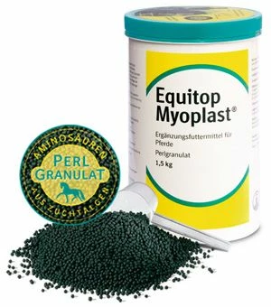 Mit Equitop Myoplast®, den Powerperlen für Gewinner, steht Ihnen ein außergewöhnlich hochwertiges Ergänzungsfuttermittel zur Verfügung. Der in Equitop Myoplast® enthaltene natürliche Rohstoff versorgt die Muskulatur mit 18 Aminosäuren in einzigartiger Zusammensetzung.