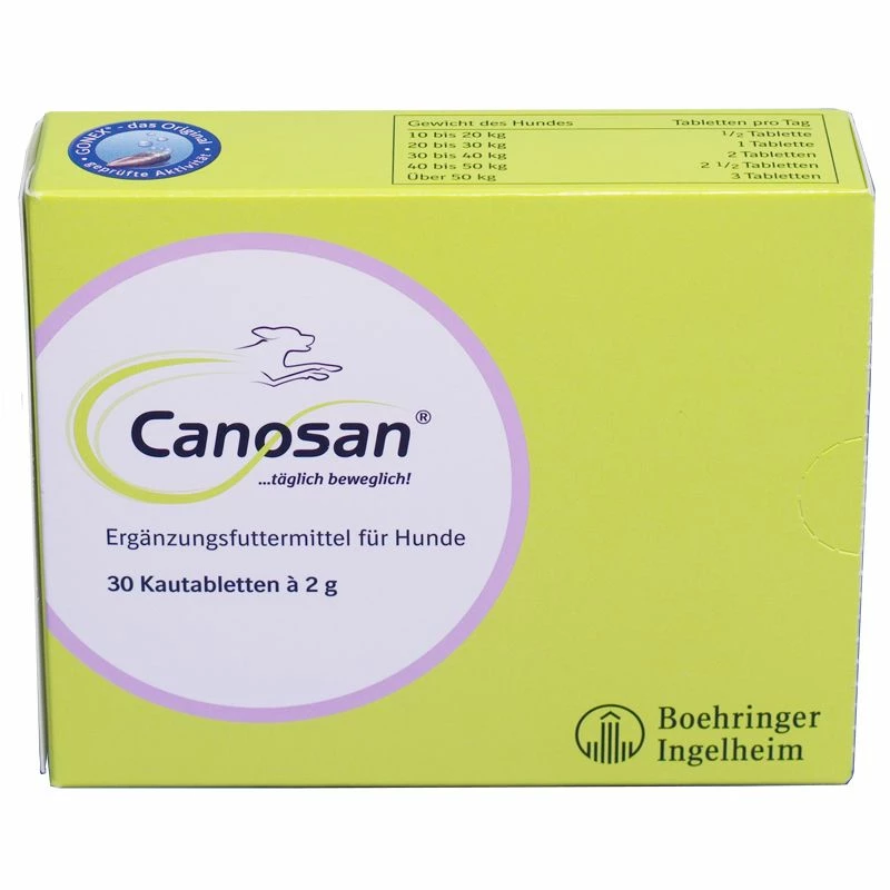 Canosan® ist ein Ergänzungsfuttermittel zur Regulierung, Stabilisierung und Regeneration von Bindegewebsstrukturen wie Knorpel, Sehnen, Bändern und Gelenkkapseln.