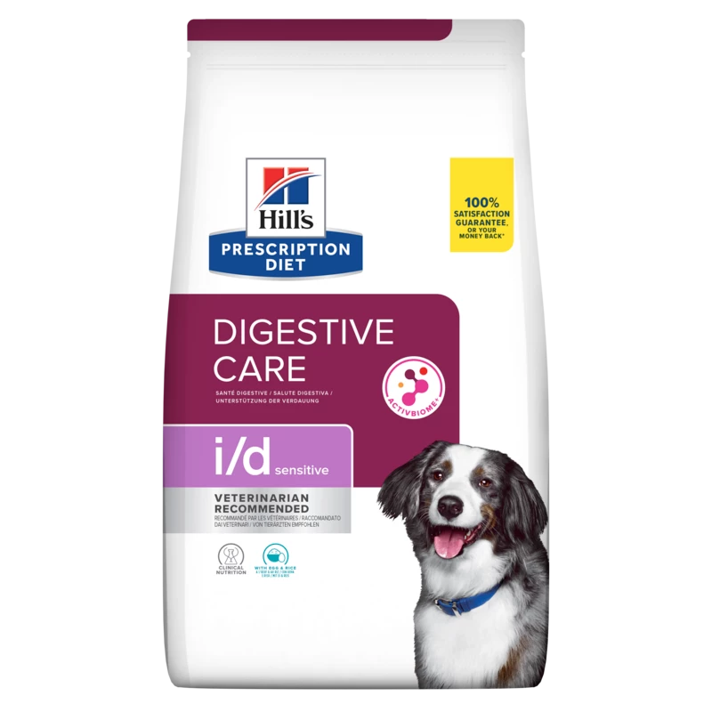 Hill’s PRESCRIPTION DIET i/d Sensitive Hundefutter ist ein leicht verdauliches Alleinfuttermittel für Hunde zur Minderung von Ausgangserzeugnis- und Nährstoffintoleranzerscheinungen. Dieses Hundefutter zur Unterstützung der Verdauung lindert zudem akute Resorptionsstörungen des Darms bei Hunden. Prescription Diet i/d Sensitive hat einen erhöhten Natrium- und Kaliumgehalt und enthält leicht verdauliche Einzelfuttermittel sowie eine ausgewählte Kohlenhydratquelle und ausgewählte Proteinquellen. Diese Trockennahrung für Hunde wird mit Ei und Reis hergestellt und hat einen köstlichen Geschmack, den Ihr Hund lieben wird.