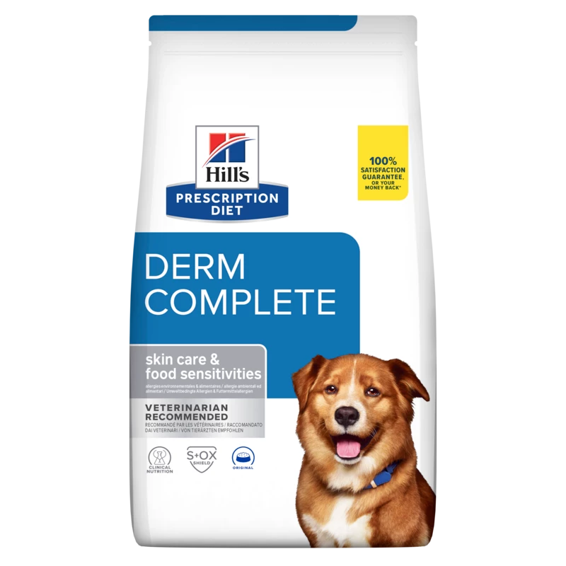 Das kann Wissenschaft. Hill’s PRESCRIPTION DIET Derm Complete Trockenfutter für Hunde mit Reis und Ei bei umweltbedingten Allergien und Hautempfindlichkeiten wurde von den Ernährungswissenschaftler:innen und Tierärzt:innen von Hill’s speziell zur Unterstützung des Managements der umwelt- und futtermittelbedingten Empfindlichkeiten Ihres Hundes entwickelt.