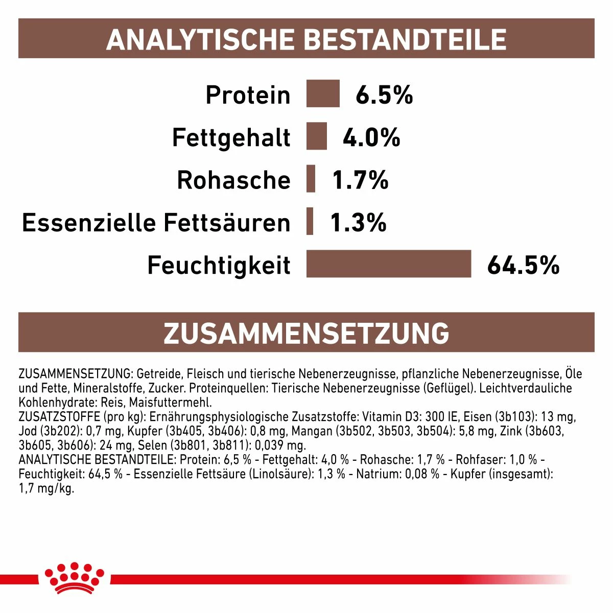 Bei diesem Produkt handelt es sich um eine tierärztliche Nahrung aus dem Sortiment Veterinary Health Nutrition von ROYAL CANIN®. Dementsprechend ist es wichtig, dass das Futter nur auf Empfehlung einer Tierärztin oder eines Tierarztes gefüttert wird. So kann sichergestellt werden, dass Ihr Tier genau die Nahrung erhält, die es wirklich benötigt.