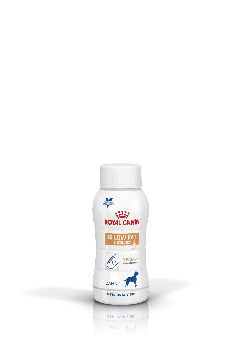 ROYAL CANIN® GI LOW FAT LIQUID ist ein Diät-Alleinfuttermittel für Hunde zur Unterstützung des Fettstoffwechsels bei Hyperlipidämie, ernährungsphysiologische Wiederherstellung und Rekonvaleszenz.