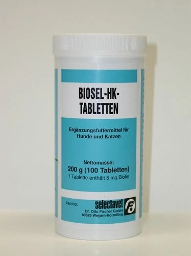 Biosel HK Tabletten dienen der Beseitigung eines Biotin-Mangels. Zusammen mit Zusätzen an Vitamin B2 und Nikotinsäure, die in ihrer Dosierung dem Tagesbedarf entsprechen sowie einem Zusatz an Cholinchlorid als Methylgruppendonator, ist dieses Erzeugnis geeignet, einer Fehlversorgung und darauf zurückzuführende Störungen im Stoffwechsel der Haut und Haare entgegenzuwirken.